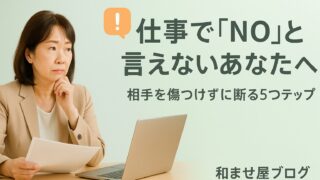 仕事で頼まれると断れない…と悩んでいませんか?本記事では、相手を傷つけずに自分も守る「NOの伝え方」を、アサーションの考え方にもとづき5つのステップと具体例で解説します。頑張りすぎを手放したい方へ。